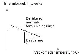 5. När linjen med normalförbrukning är uppritad kan man i diagrammet avläsa hur följande veckoförbrukningar ligger i förhållande till normalförbrukningen och besparingens storlek kan fastställas.